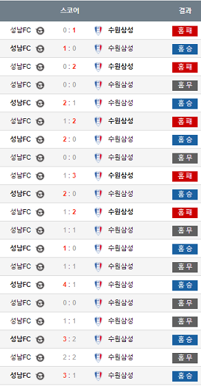 성남은 홈에서 수원을상대로 20경기에서 15승무 5패 면