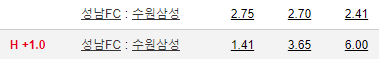 이 경기 수원삼성1.5마핸이 6.00배당 이네요 , 와우!