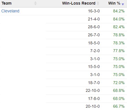 홈에서 정배시 16승 3패로  승률1위를 기록하고 있는 클리블랜드