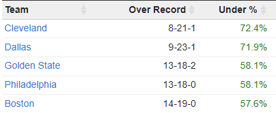 홈 언더1위 클리블랜드 , 2위 댈러스