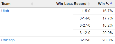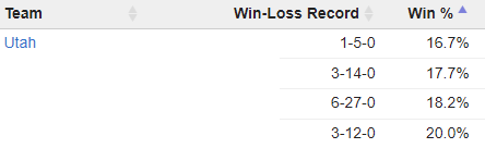 표본은 작지만 유타는 원정에서 역배를 받았을때 1승 5패로