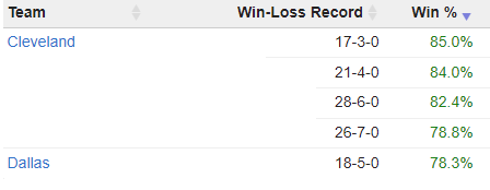 댈러스는 클블만큼의 압도적인 승률은 아니지만 그래도 홈에서 23경기 정배를 받은경기에서