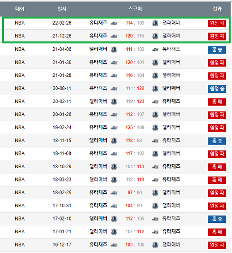 댈러스가 유타에게 항상 패배를 많이 하던팀인데