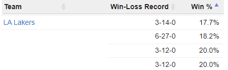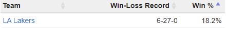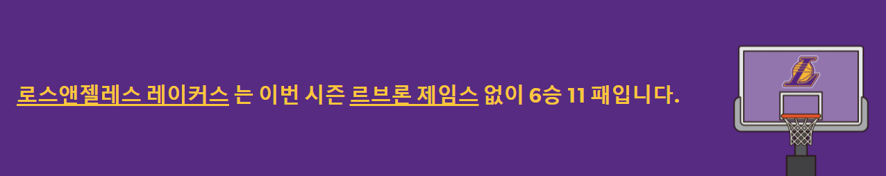올시즌 레이커스는 르브론이 결장했을때 6승 11패 이고