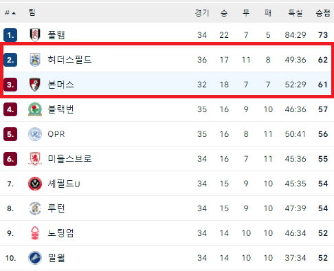근데 지금 본머스가 3위이고 , 2위랑 거의 승점차가 없습니다