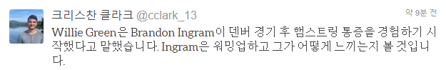 잉그램이 덴버랑 연장을 치루면서 그 직후 햄스트링 이상이 왔다고 되었는데
