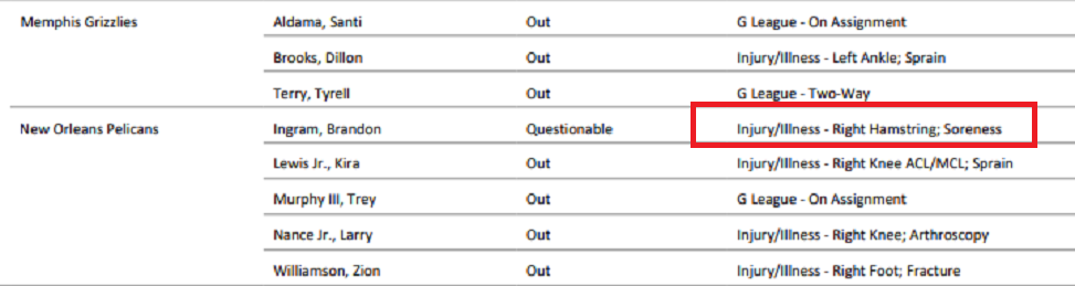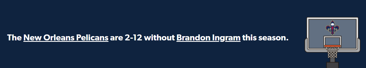 올시즌 잉그램이 결장한 경기에서 뉴올은 2승 12패 입니다