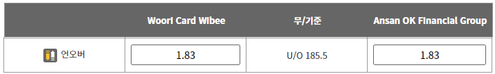 Woori Card Wibee WIN +1.5 총 배당 : 1.94