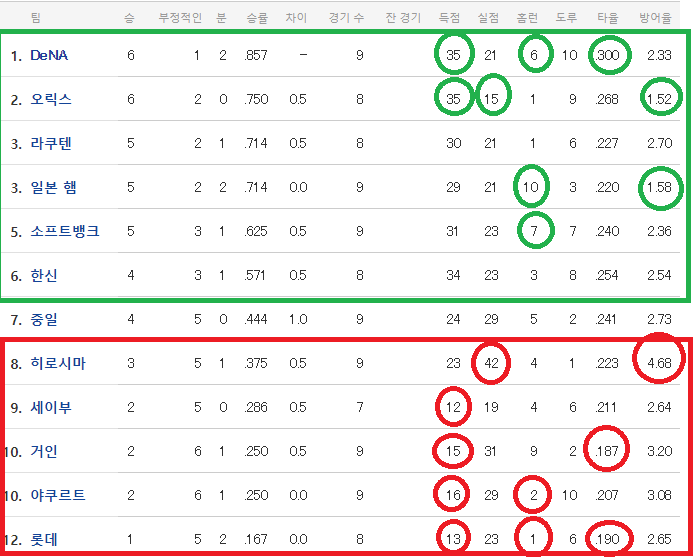 현재까지 일야 시범경기 기록들만 놓고봤을때