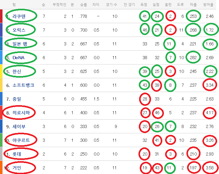니혼은 반대로 9승 1패가 됩니다