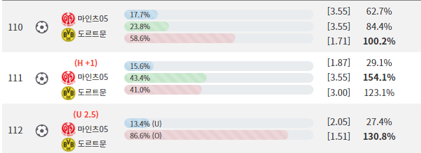 도르트문트는 홈에서는 팬들의 응원빨로 승률이 높지만