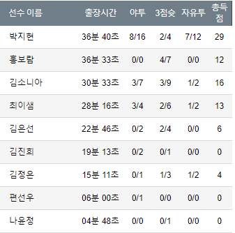 박혜진이 있을때와 없을때의 차이가 굉장히 큽니다
