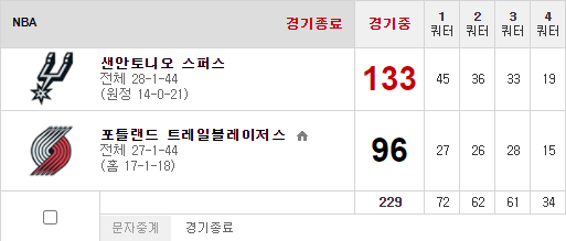 포틀하고 샌안하고 경기를 해서 오버가 나오든