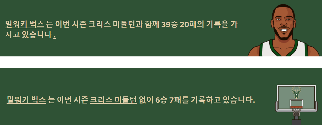 미들턴이 없을때 밀워키는 승률이 50%가 못넘져
