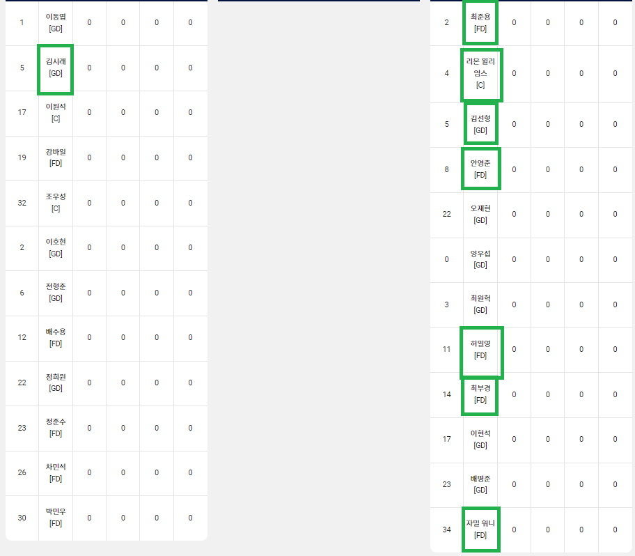 현재 몇몇 선수들은 D리그에서 콜업한 애들 입니다