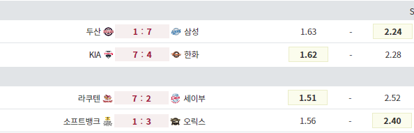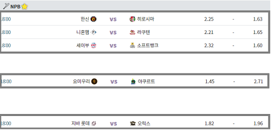 한신히로 , 니혼라쿠 , 세부소뱅  해당3경기가 동일배당 경기져