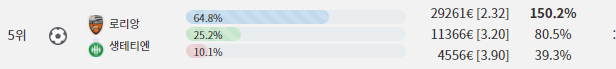 그렇기때문에 지금 해당경기의 환급률이 150% 라고는 하나
