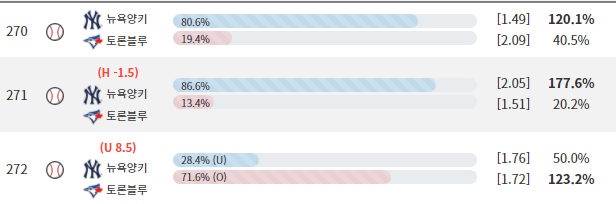 양키홈에서 토론토랑 최근11경기에서 10언더를 기록하고 있다는점