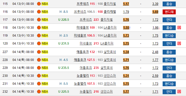 몇몇 서부홈강팀들 혹은 동부홈강팀들이 당연히 홈에서 이기겠지만