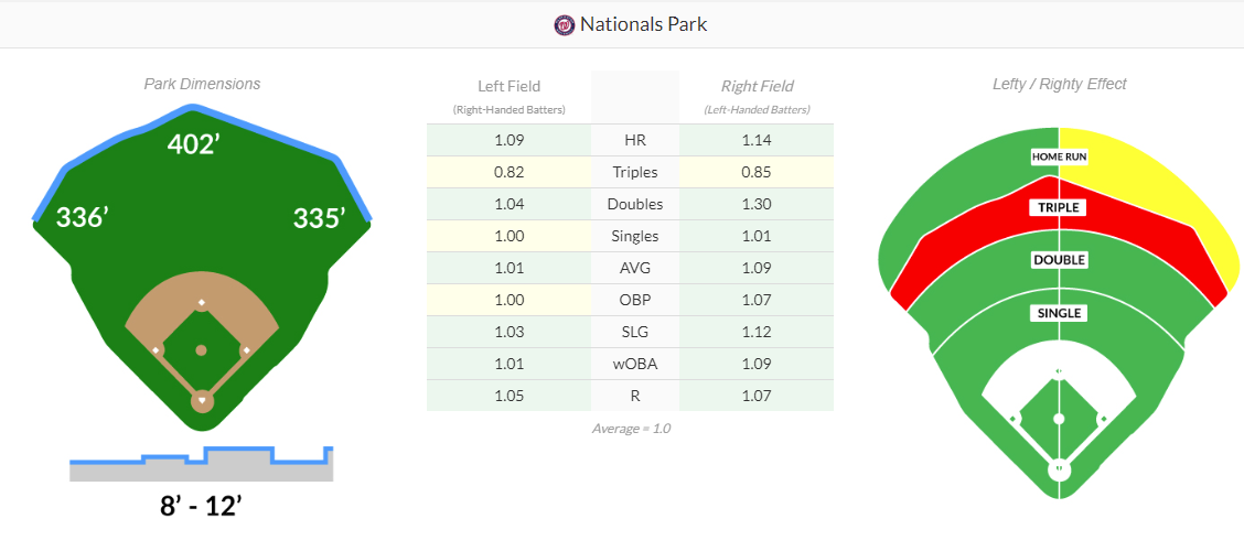워싱턴 홈구장인 내셔널스파크 역시 약오버 구장에 해당합니다