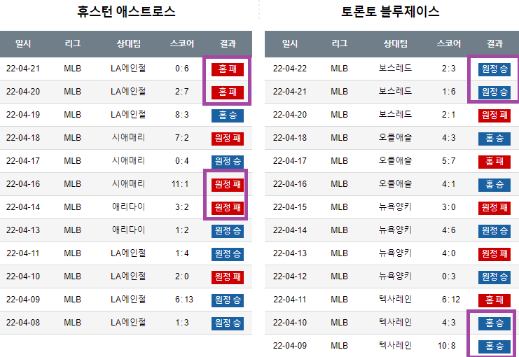 토론토가 낮이밤저팀이고   , 휴스턴이 밤이낮저팀 입니다.