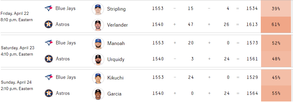 요약을 하면   휴스턴이 선발에서 확연하게 앞서는건 당연히 1차전이다