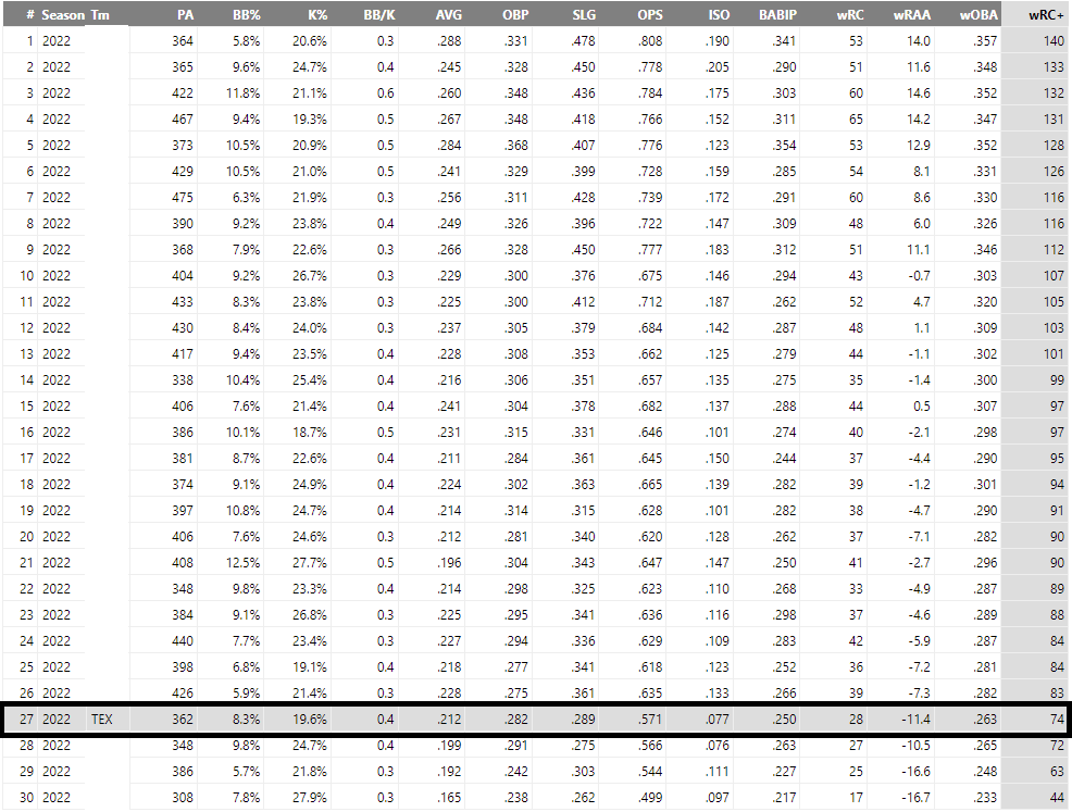 이것이 텍사스의  우완상대   득점생산력 입니다