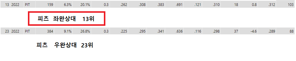 좌완과 우완대비 득점생산력의 차이가 큰 팀에 속합니다