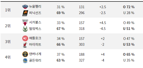 시카고랑 뉴올이랑 덴버가 오늘 패배를 한다라면