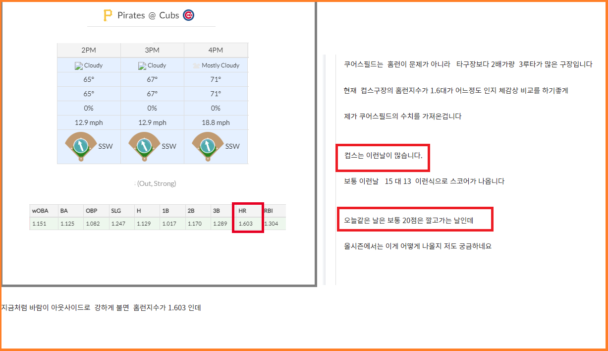 즉, 날씨와 + 본인들이 점수를 더 잘내는 좌우놀이에서 유리한날이다