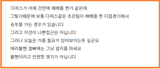 다저스가 좌완이라는게 아주 약간 신경쓰인다 라면