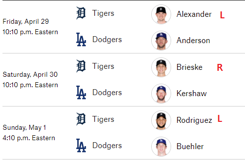 다저스가 딱 하나가 안좋습니다 , 이번시리즈에서 좌투를 두번 만납니다.