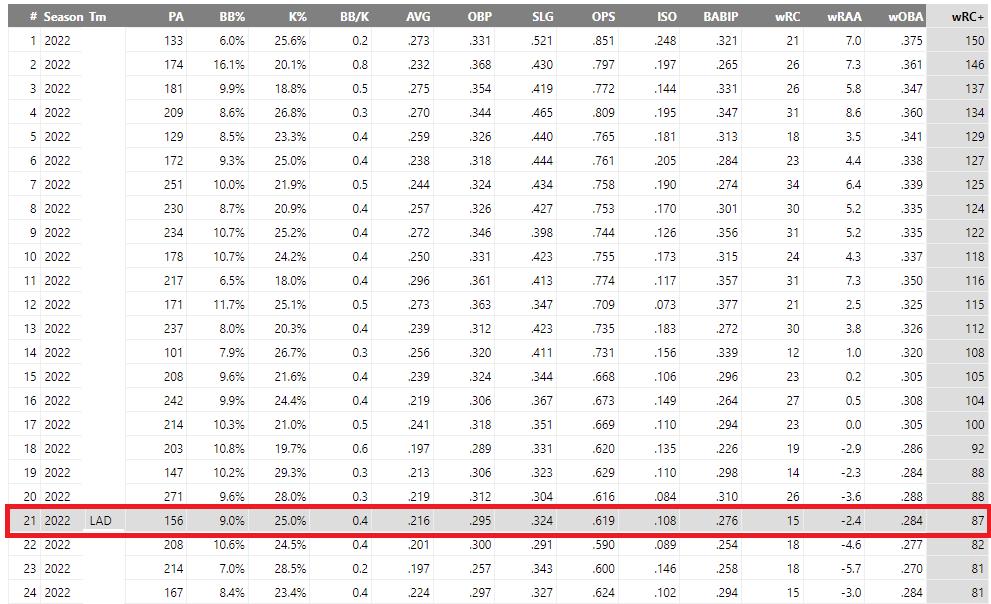 왜 자꾸 좌투 좌투하냐면 실제로 다저스가 우투대비 좌투에 대한 득점생산력 자체가