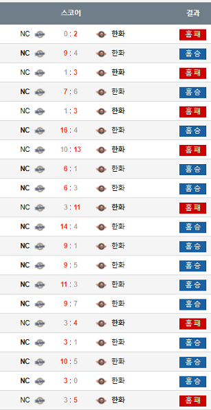 엔시가 홈에서 한화에게 연패를 한적이 있는가? 없죠