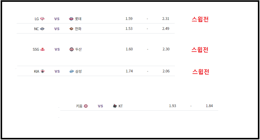 두산플핸이 가장 좋아보인다 , 역배는 한화나 키움이 낫다 ...