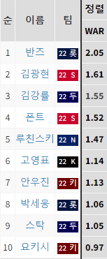 승리기여도가 높은 선발투수들은 대체적으로 반대를 가기에는 매우 부담스런 선수입니다