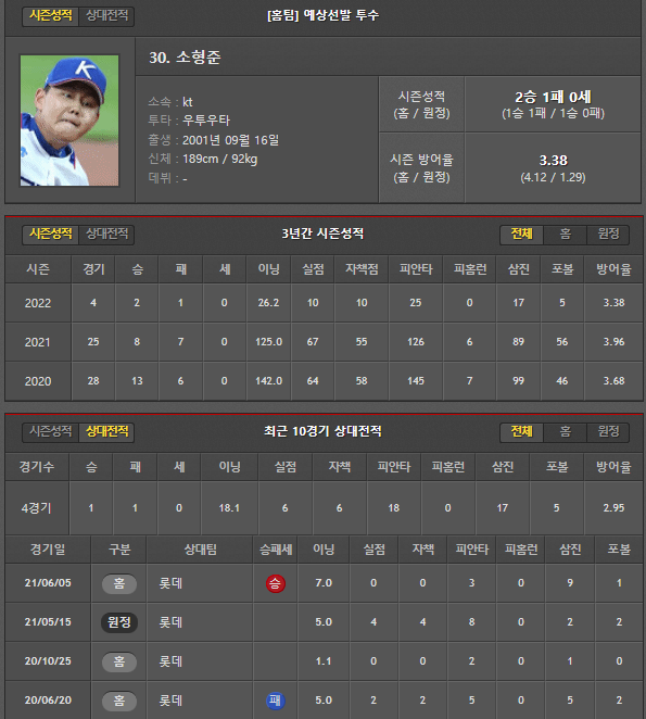 소형준 개인으로 보면 소형준에게 롯데는 본인이 그렇게 강했던 팀은 아닙니다