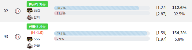 왜?  SSG자체가 1점차가 잘없고  한화는 아예없기때문에