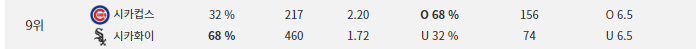 CHI White Sox WIN 총 배당 : 3.31