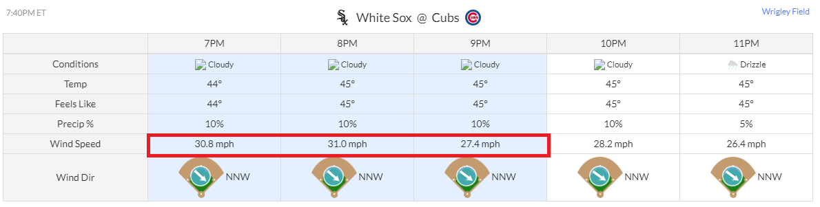 컵스경기는 날씨의 상황이 중요한팀 인데