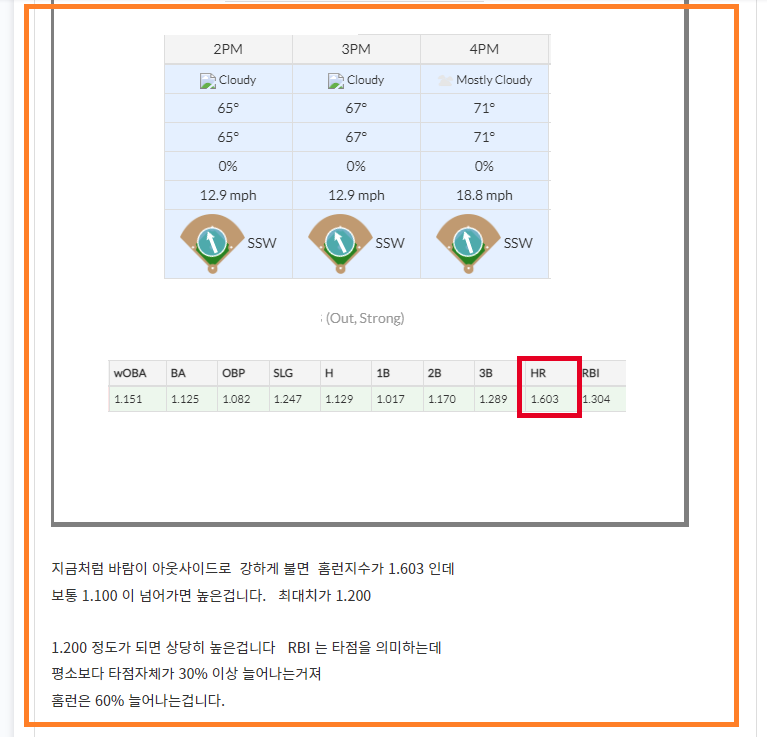 현재 제가 올려드린 구장의 날씨는 현재상태에서의 예측입니다