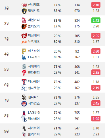 오늘은 커버스1위인 메츠가 좋아보입니다