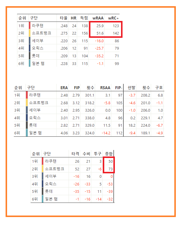 이거는 오릭스가 문제가 아니라 라쿠와 소뱅이 워낙 강해서 그런겁니다