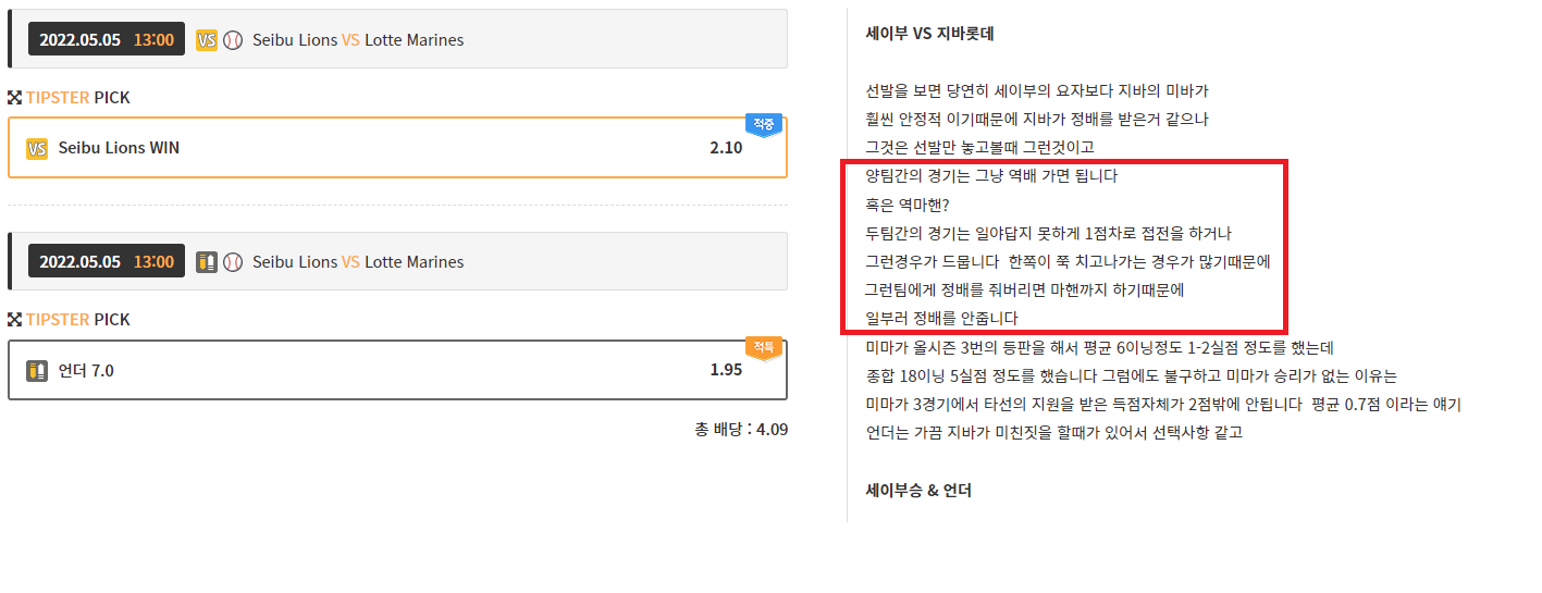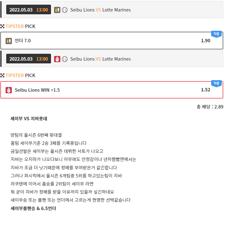 오늘 라쿠텐선발이 좌투면  세이부가 홈이기도 하고 그냥 패스를 했을겁니다