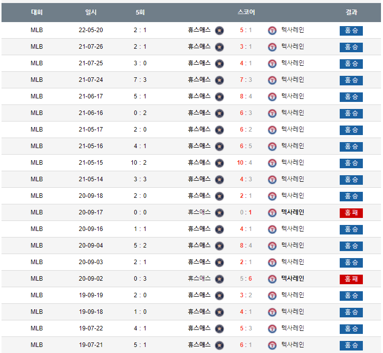 반대로 텍사스가 의외로 휴스턴을 상대로 홈에서 나름 선방을 좀 하는편이기도 합니다