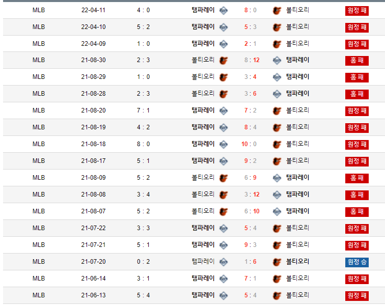 템파는 볼티상대로 정말로 상대전적에서 압살을 합니다