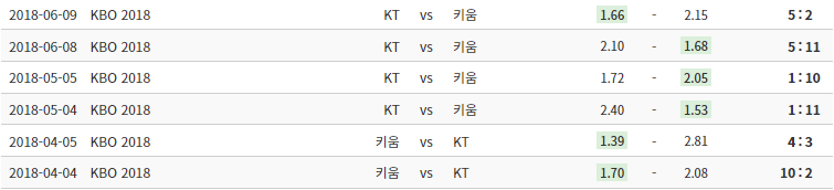 18시즌에 키움이 케티를 상대로 5연승을 하고 패배를 합니다