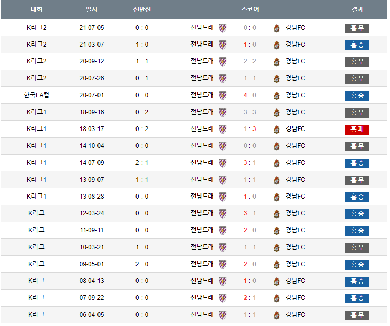 20:00 Jeonnam Dragons VS Gyeongnam FC