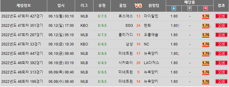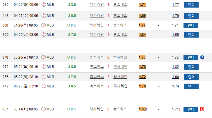 근데 문제는 오늘 오전에 휴스턴 오버가 매우 심하게 몰려서 오버배당이 내렸나봅니다