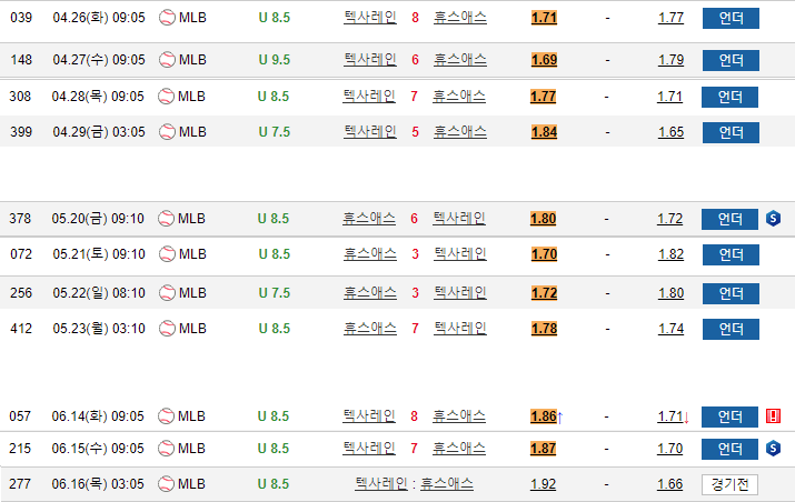양팀은 올시즌 10번 맞대결에서 전경기 언더가 나왔는데